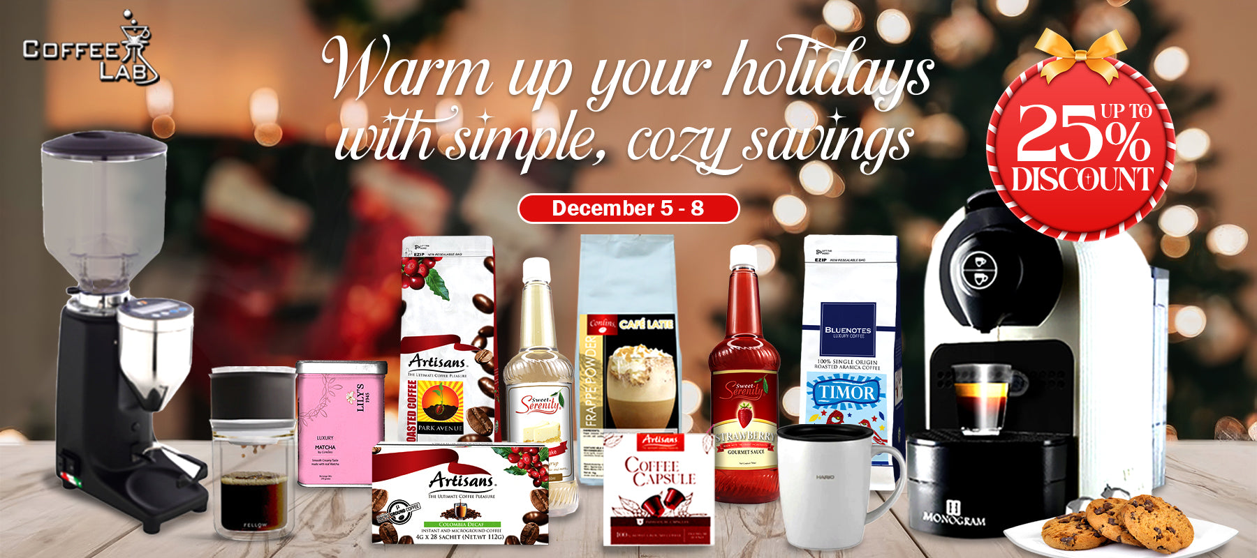 Warm up your holidays with simple, cozy savings! ❄️☕ Enjoy up to 25% OFF • Dec 5–8